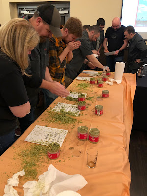 The farms are rather calm for 11 months of the year and then BAM - it's controlled chaos as varieties near harvest time. If they are lucky each variety will be ready at separate times but it varies. Some years it's a 2 day window for 3 or 4 varieties and on the west coast where they get the REALLY good beer, hops are picked and trucked immediately to the brewery.